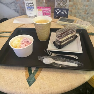 ⬆️ホテルにあったアイスとケーキとジュース🥺思わず食べたくて取ってきちゃった😋ティラミスだーーいすき😭💓
